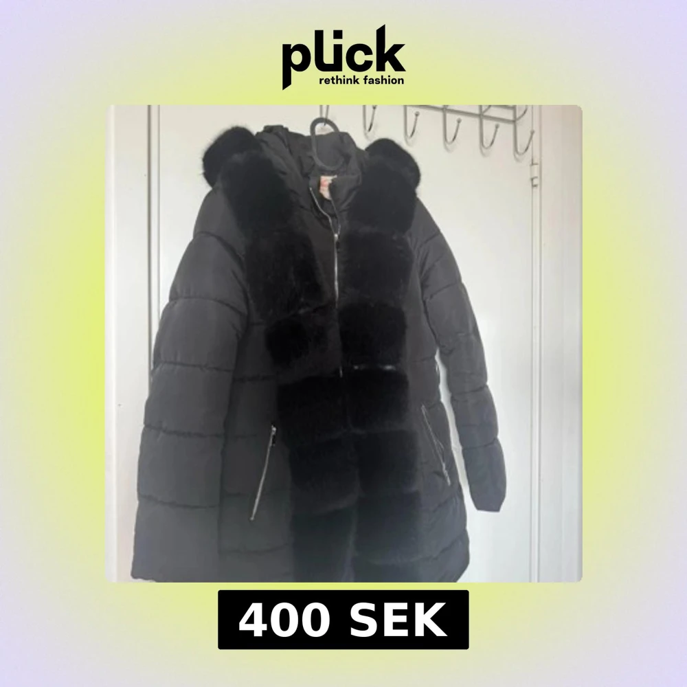 Svart pufferjacka med pälsdetaljer