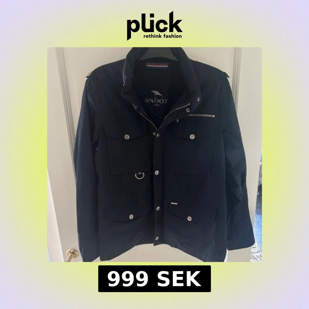 Säljer en blå field jacket från Snoot med flera stora fickor framtill, silverfärgade knappar och dragkedja. Jackan har lång ärm och en snygg metallbadge på ena ärmen. Perfekt för dig som gillar stilren och funktionell design. Jackan är i storlek L och är i väldig bra skick/nyskick! Och kostar ny 5500kr