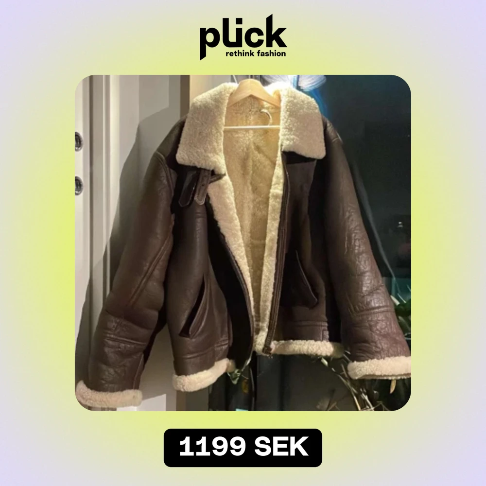 jacka i sherlingmaterial, äkta läder, äkta ull.