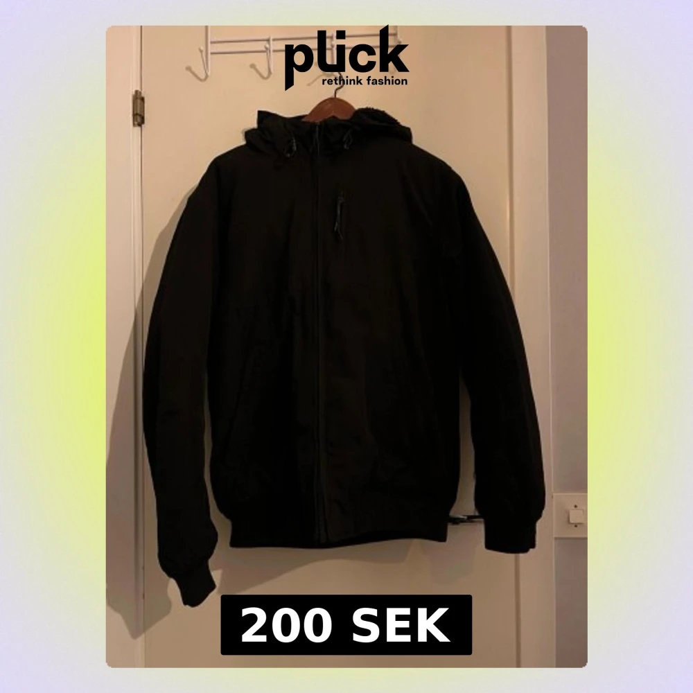 Säljer en svart vindjacka från FSBN i storlek L. Jackan har luva, dragkedja framtill och två sidofickor. Perfekt för blåsiga dagar och enkel att matcha med olika outfits. Tillverkad i syntetmaterial.