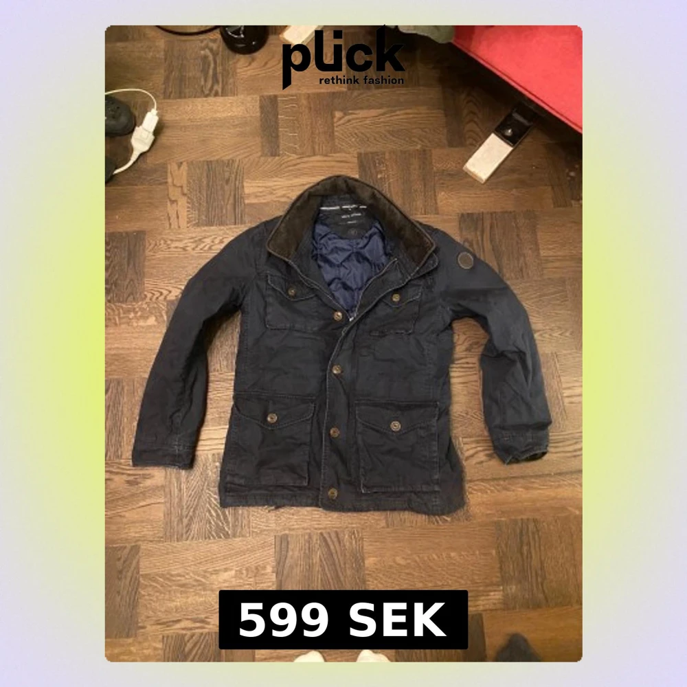 Riktigt snygg mörkblå vadderad field jacka från Marc O'Polo med quiltat foder och flera stora fickor framtill. Jackan har en krage i brun mocka-look och stängs med både knappar och dragkedja. Perfekt för vintern. Vid frågor eller funderingar, fråga på!