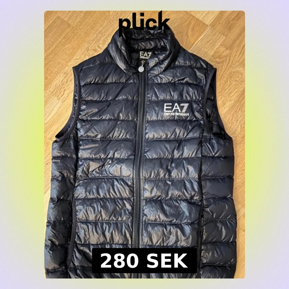 Snygg svart dunväst från EA7 Emporio Armani med quiltad design och hög krage. Västen har dragkedja framtill och logga på bröstet. Perfekt för lager-på-lager och streetstyle. Tillverkad i polyester och polyamid.