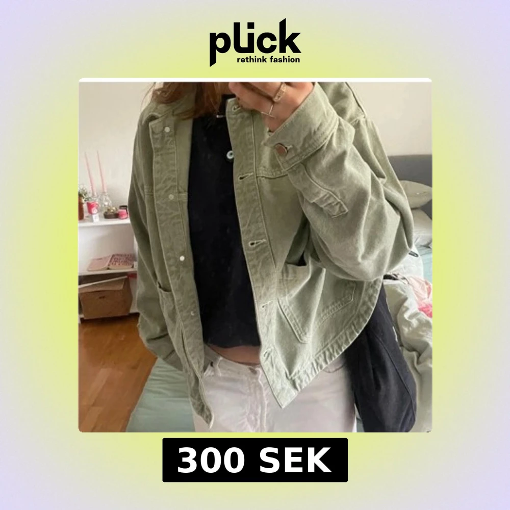 Snygg ljusgrön jeansjacka med avslappnad passform och stora fickor framtill. Jackan har knappar och klassisk krage, perfekt att slänga över en t-shirt för en chill look.