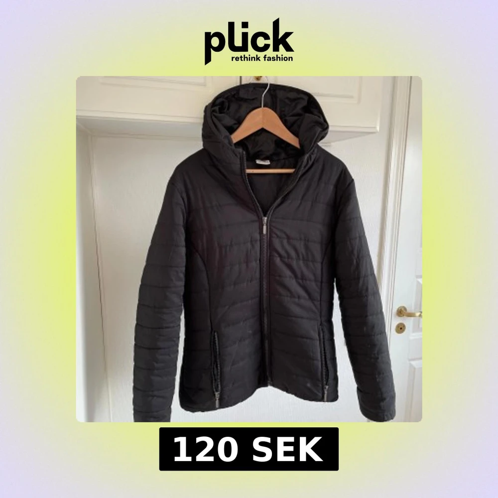 Säljer en svart quiltad jacka från Elite Joy med dragkedja och huva. Jackan har långa ärmar och praktiska fickor med dragkedjor. Perfekt för kyligare dagar.