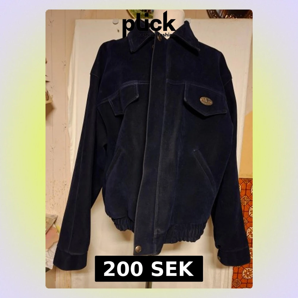 Snygg mörkblå mockajacka från V Import Export, made in Italy. Jackan har klassisk bombermodell med stora fickor framtill, bred krage och elastisk midja. Stängs med knappar och har detaljer i metall. Perfekt för dig som gillar retrovibbar och vill sticka ut.