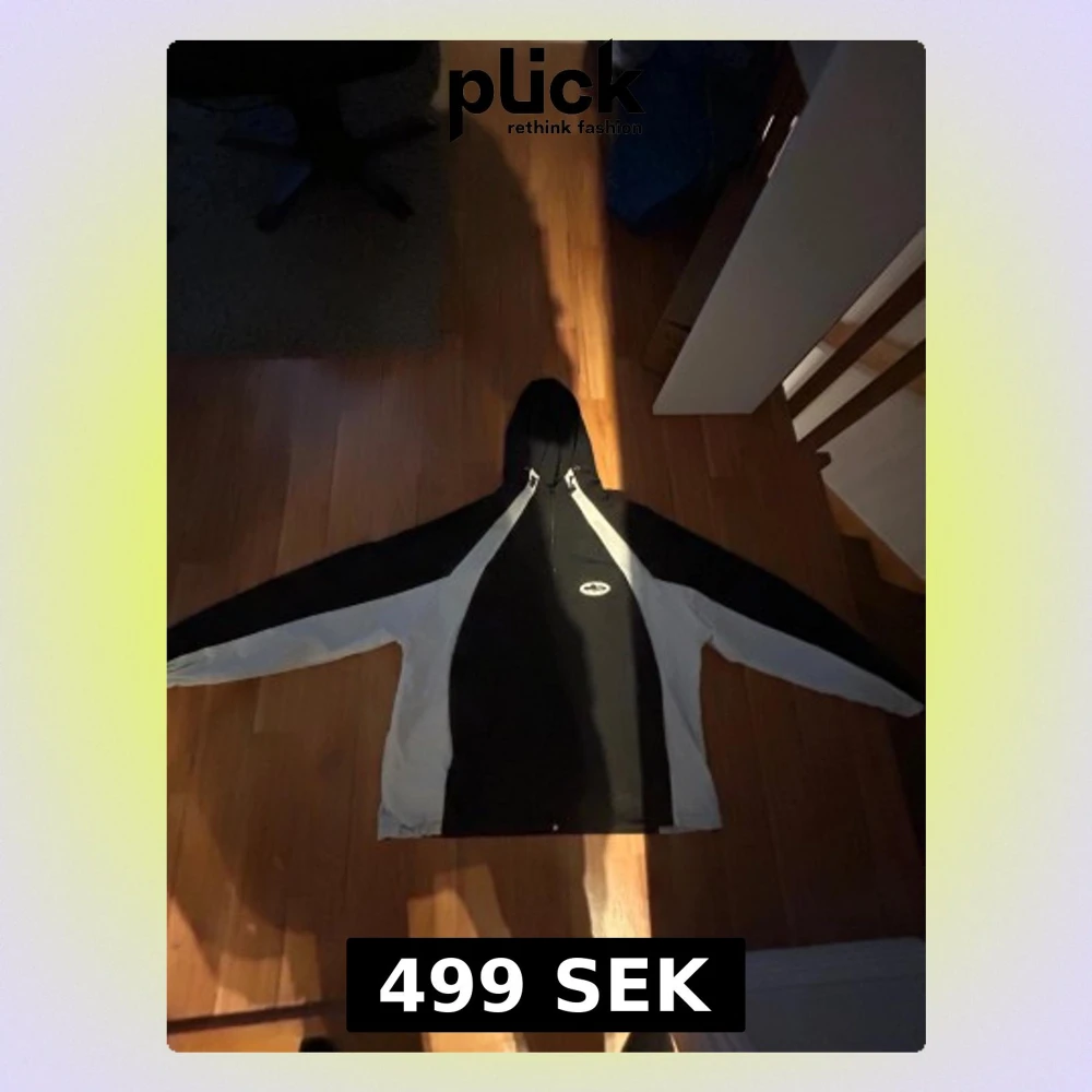 Säljer en svart och vit vindjacka från Corteiz i storlek XL men den sitter som storlek L. Jackan har huva, dragkedja och coolt logomärke på bröstet. Materialet är troligtvis polyester och jackan har meshfoder på insidan. Perfekt för dig som gillar streetwear vibes.