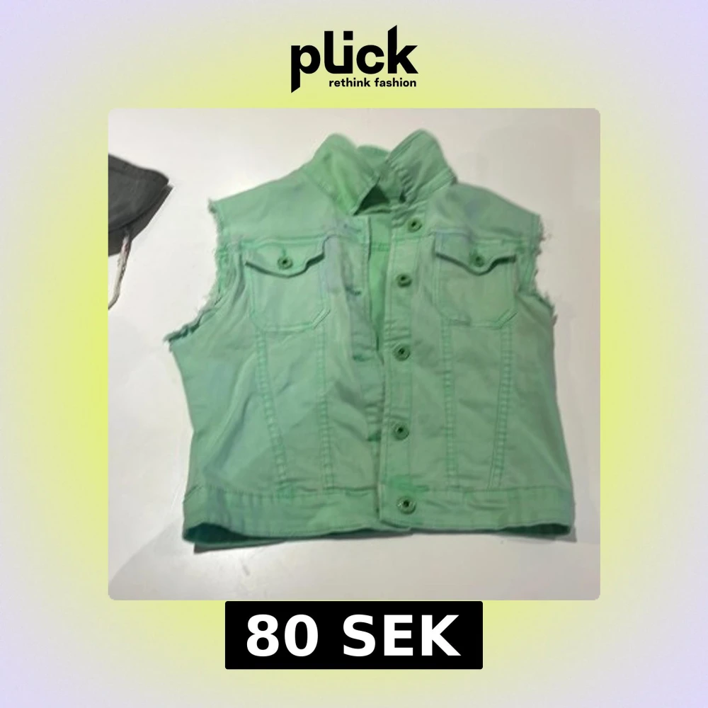 Snygg mintgrön jeansväst från Kidsbrand med råa ärmslut, klassisk krage och knäppning framtill. Västen har två bröstfickor med lock och knappar. Perfekt för att ge din outfit en cool touch.