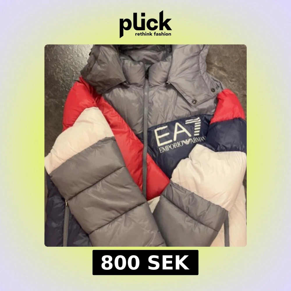 Snygg pufferjacka från Emporio Armani EA7 med stora loggan på bröstet. Jackan har färgblock i grått, rött, mörkblått och vitt, hög krage och dragkedja framtill. Perfekt för dig som vill sticka ut med en trendig vinterjacka.