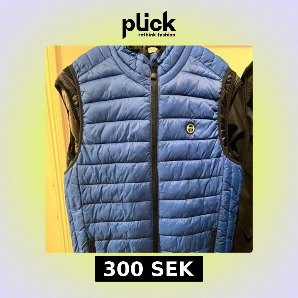 Blå quiltad dunväst från Sergio Tacchini med svart dragkedja och logga på bröstet. Västen har ståkrage och horisontella sömmar för en sportig look. Perfekt att slänga över en hoodie eller tröja när det är kyligt ute.