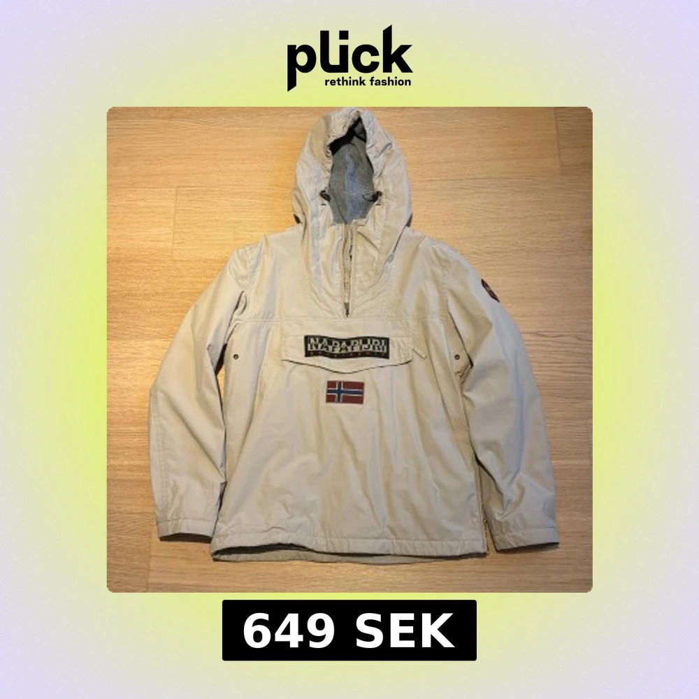 Säljer en beige skidjacka från Napapijri med huva och halv dragkedja. Insidan är fodrad med mjuk fleece för extra komfort. Jackan är som ny och sparsamt använd.