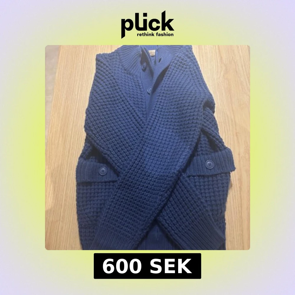 Mysig blå stickad väst från Cashmere Company med grovstickad struktur och ribbade detaljer. Västen har knappar framtill och på sidorna, vilket ger en cool touch. Perfekt för lager-på-lager och chill stil.