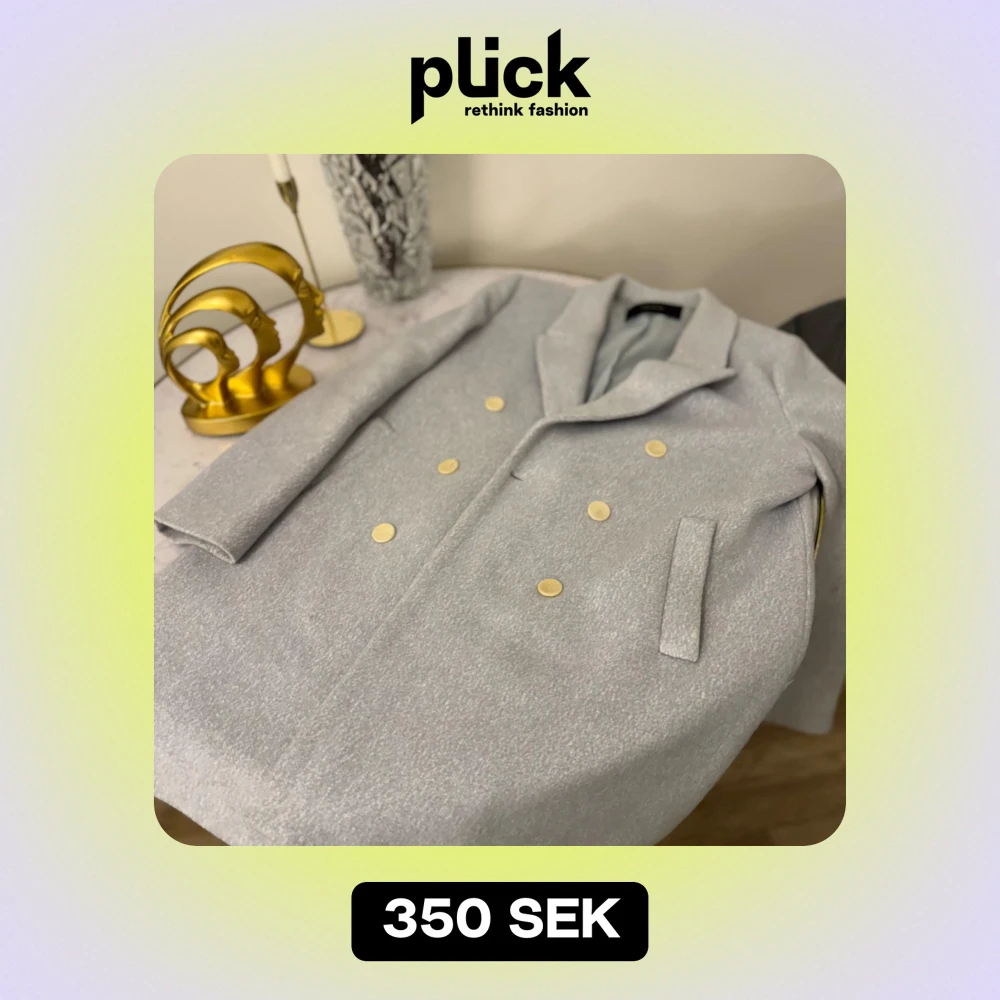 Säljer en elegant ljusgrå kappa med dubbelknäppning och stiliga guldknappar. Perfekt för höst och vår, med en klassisk design som passar både till vardags och fest. Kappan har långa ärmar och en snygg krage. Ett måste för garderoben!