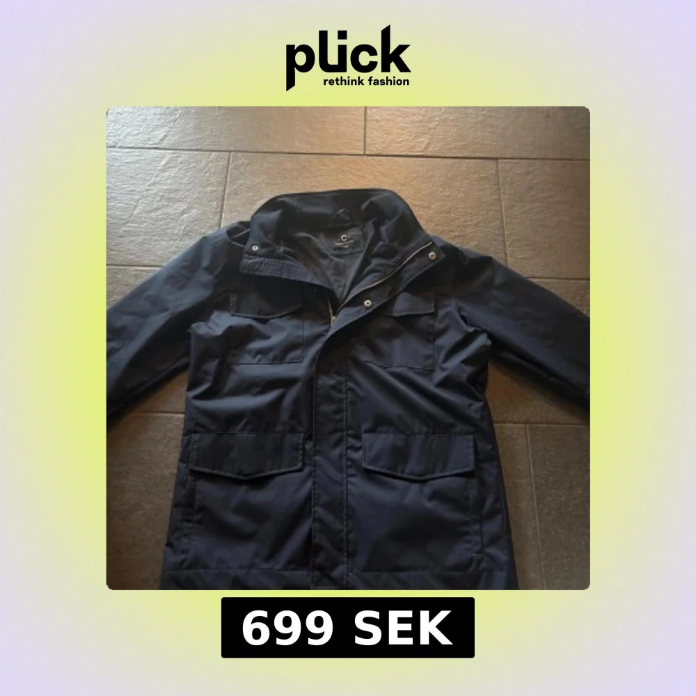 Parkajacka i mörkblått från C Studio med fyra stora fickor framtill, dragkedja och tryckknappar. Jackan har hög krage och är tillverkad i ett slitstarkt polyestertyg. Perfekt för kyliga dagar och har en clean, stilren look. Ny pris 1300