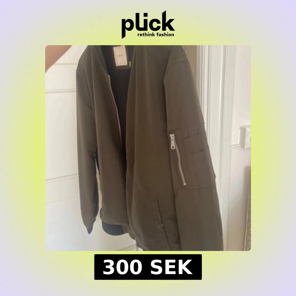 Säljer en olivgrön bomberjacka från Celio* med klassisk passform. Jackan har dragkedja framtill, ribbade muddar och krage i svart samt en ärmficka med dragkedja. Insidan är fodrad med mesh för extra komfort.