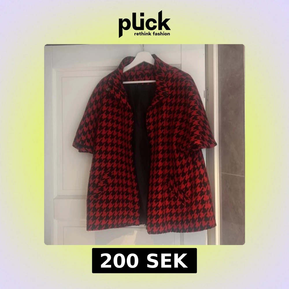 Snygg kappa i röd och svart hundtandsmönster med korta ärmar och bred krage. Jackan har två fickor framtill och stängs med knappar upptill. Perfekt för dig som vill sticka ut med ett klassiskt men ändå edgy plagg.