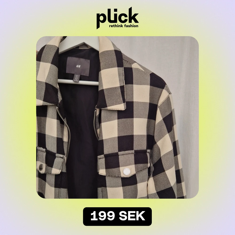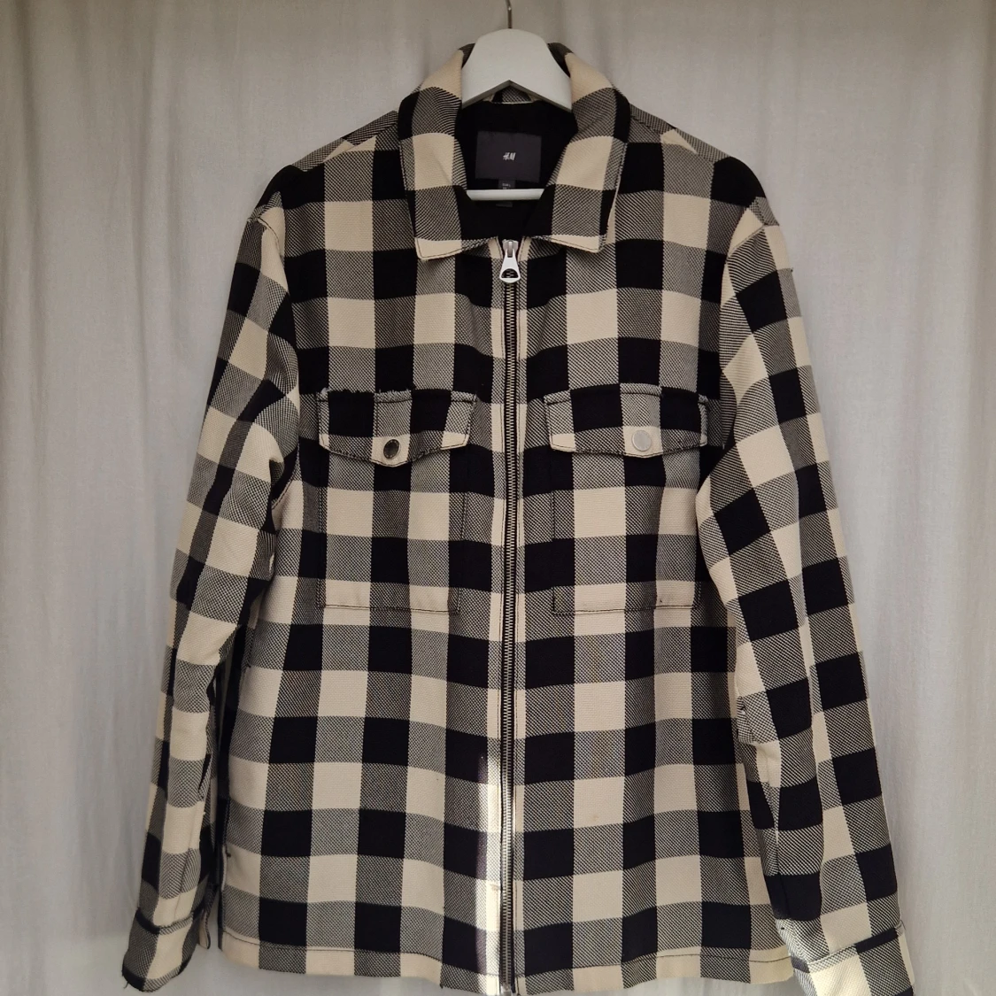 Rutig höstjacka från H&M storlek L. Bra skick. Lite fransig på ena bröstfickan. Liten fläck som förmodligen går bort.