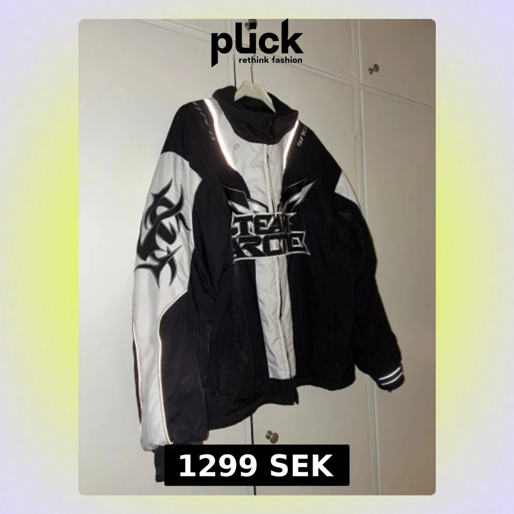 Cool svart och vit vindjacka från Arctic Cat med stora tryck och tribal-mönster på ärmarna. Jackan har dragkedja, höga reflexdetaljer och ett sabertooth-tryck på ryggen. Perfekt för dig som gillar att sticka ut och vill ha något unikt i garderoben.