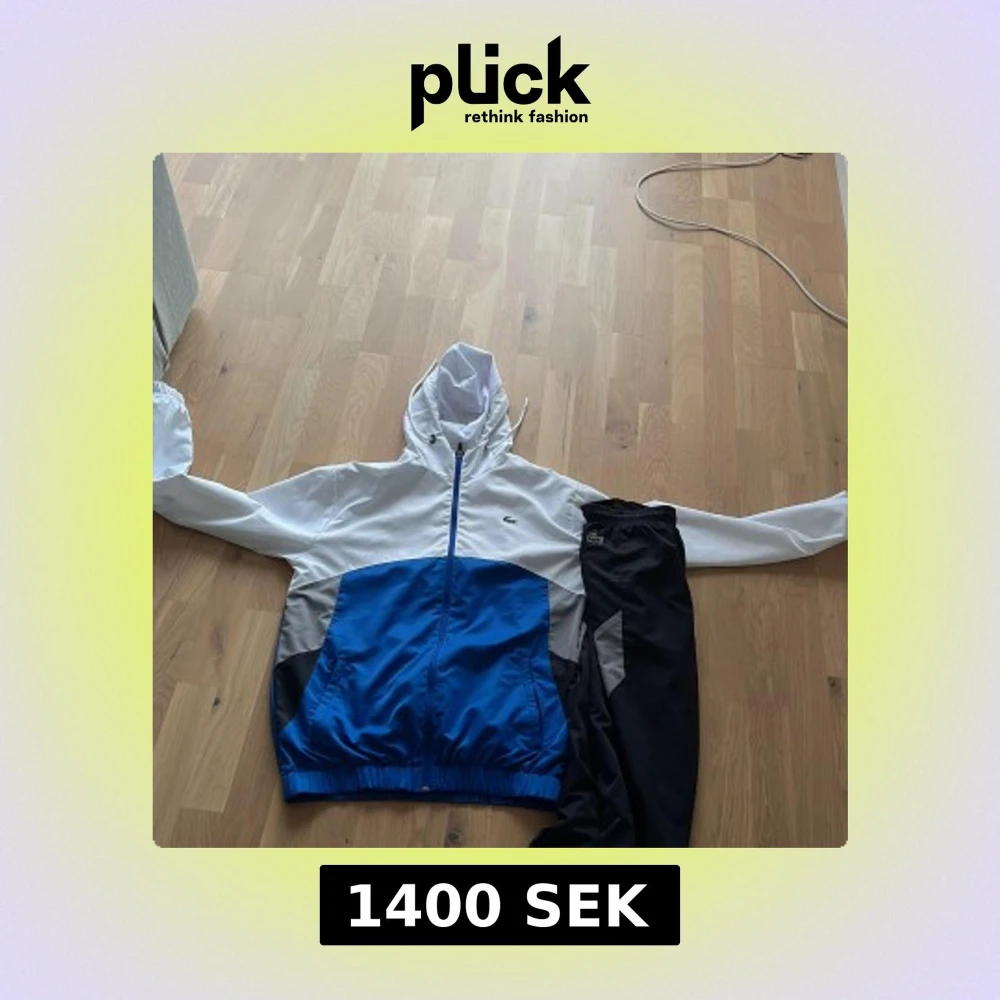 Snygg tracksuit från Lacoste Sport i storlek L. Jackan har huva med snörning, dragkedja framtill och färgblock i vitt, blått och grått. Tillverkad i lätt polyester med meshfoder för extra komfort. Perfekt för dig som gillar sportig och clean stil. perfekt till dig som siktar mot den franska stilen