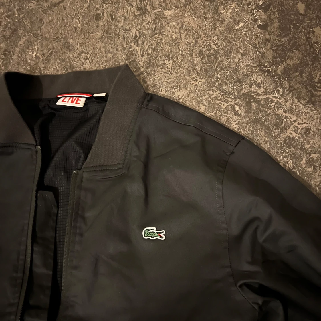 Mörkgrön Lacoste Live bomberjacka med dragkedja fram och den ikoniska krokodillogotypen på bröstet. Jackan har en ribbad krage, muddar och nederkant. Perfekt för en avslappnad men ändå stilfull look.