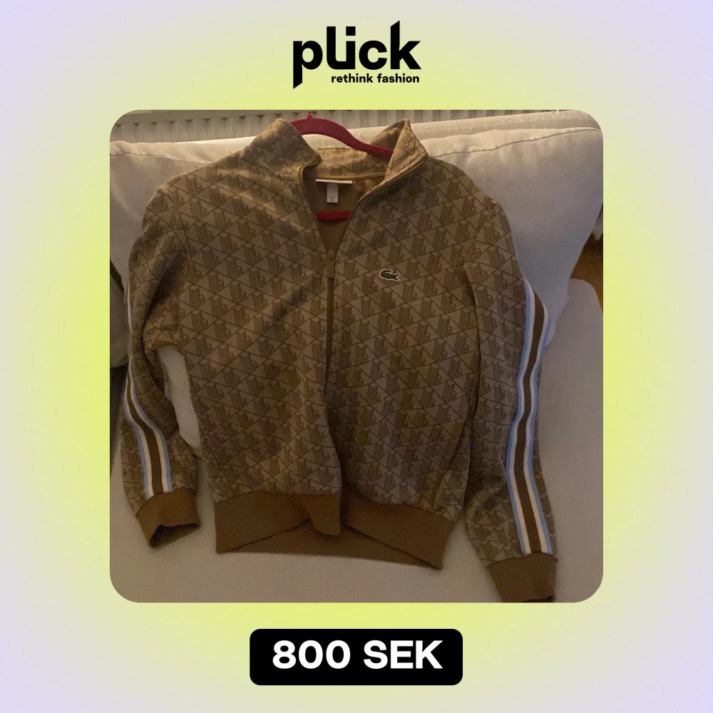 Säljer en monogram från Lacoste i mycket bra skick. Den har långa ärmar med vita och blå ränder längs sidorna och en dragkedja framtill. Perfekt för höst och vår! Ny pris 2.100