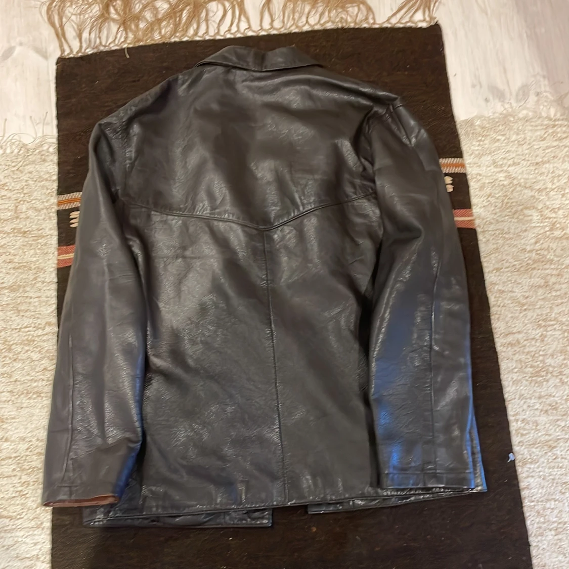 Asfet vintage svart läderjacka i perfekt skick! Storlek L-XL. Möts i Malmö och tar swish! Står ej för frakt eller postens slarv (: