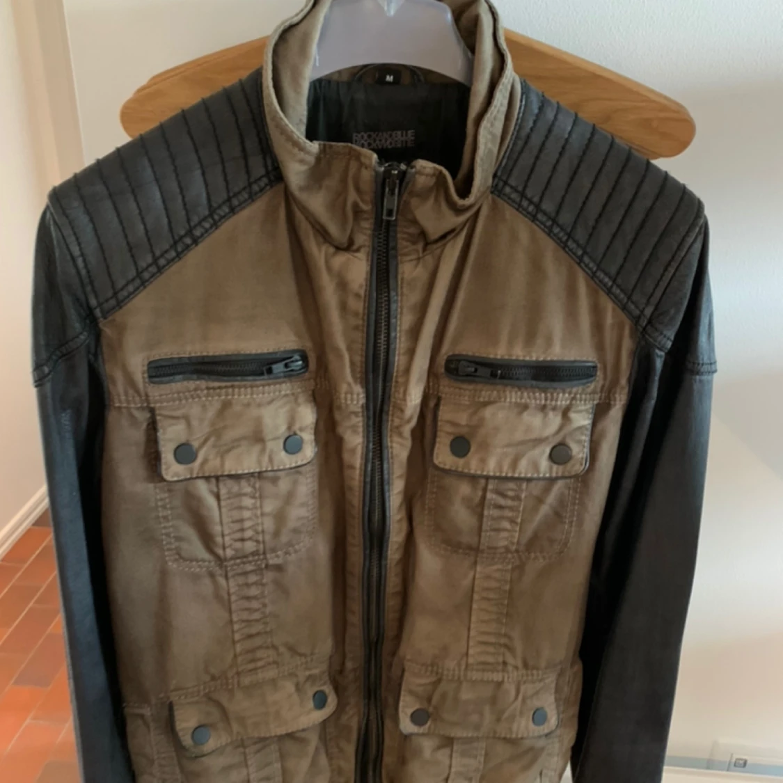 Khakigrön höstjacka med läderdetaljer av märket Rock and Bite