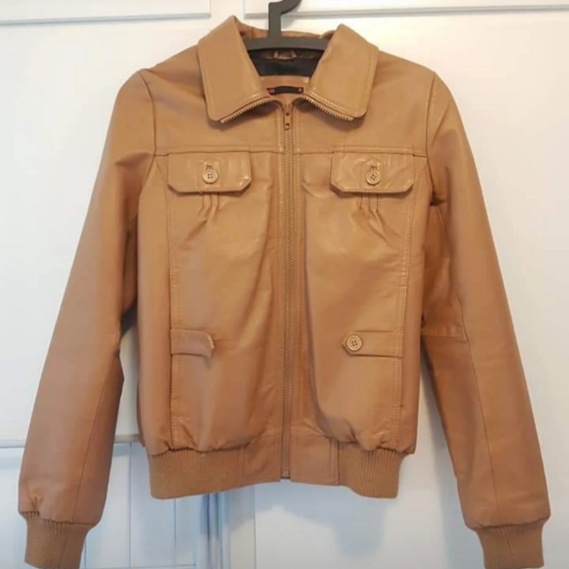 Äkta läderjacka i storlek M. Fattas en knapp. Knappt använd