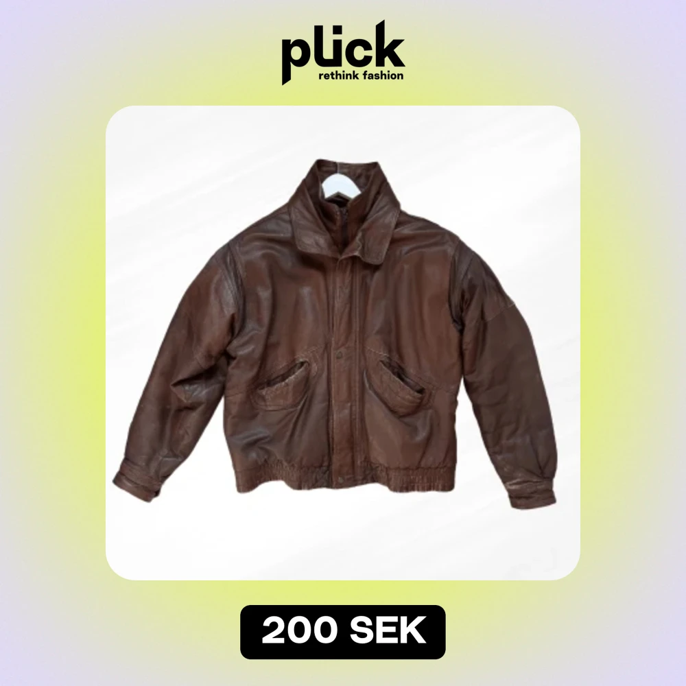 En brun läderjacka med en vid passform som är köpt på beyond retro. Det finns tydliga tecken på användning (se bild 2). Hör av dig angående frågor eller mått