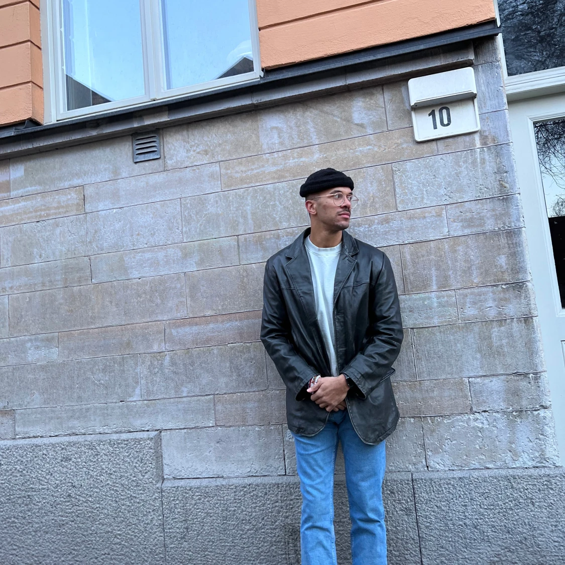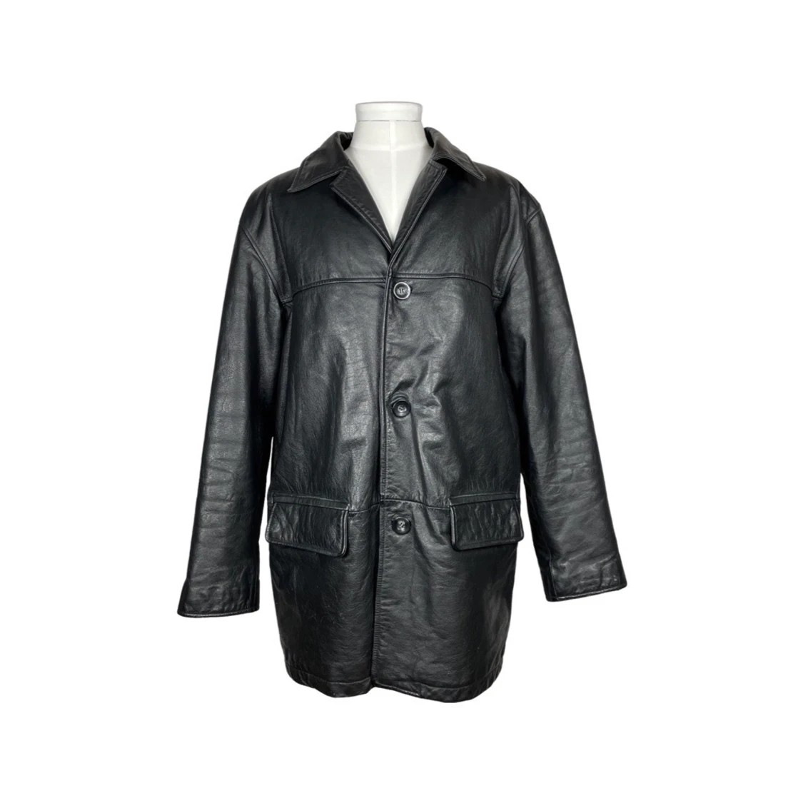 Tung klassisk läderjacka Spetsiga slag Sidofickor Innefickor Lång modell Regular fit/normal passform