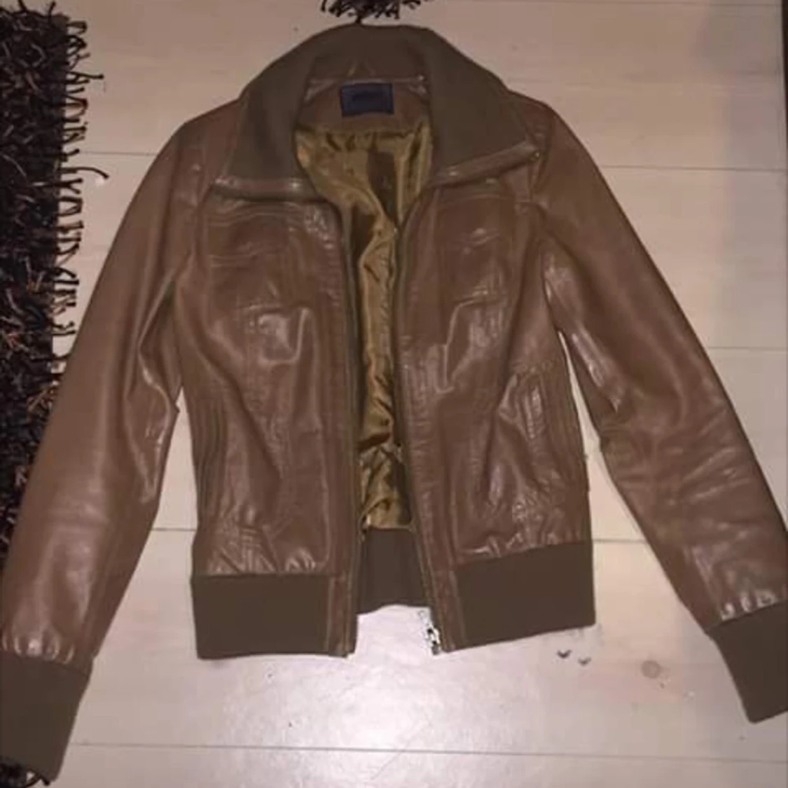 Jacka i äkta läder , passar stl S och XS . Använt ett fåtal gånger .