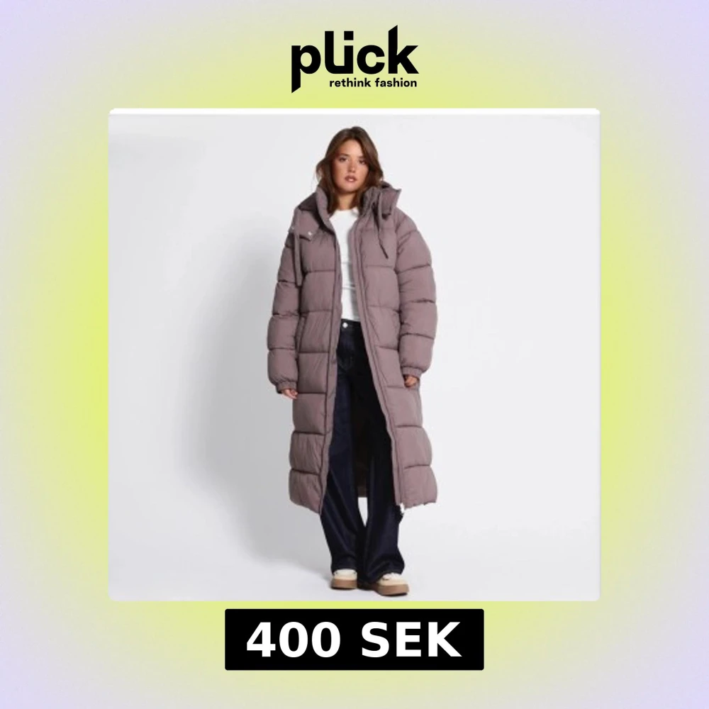 Lång, oversized pufferjacka i beige nyans med huva och hög krage. Jackan har dragkedja framtill, sidfickor och quiltad design. Perfekt för kalla dagar och ger en chill vibe till outfiten. Opps!!! Den är ljusare i verkligheten än på bilderna.