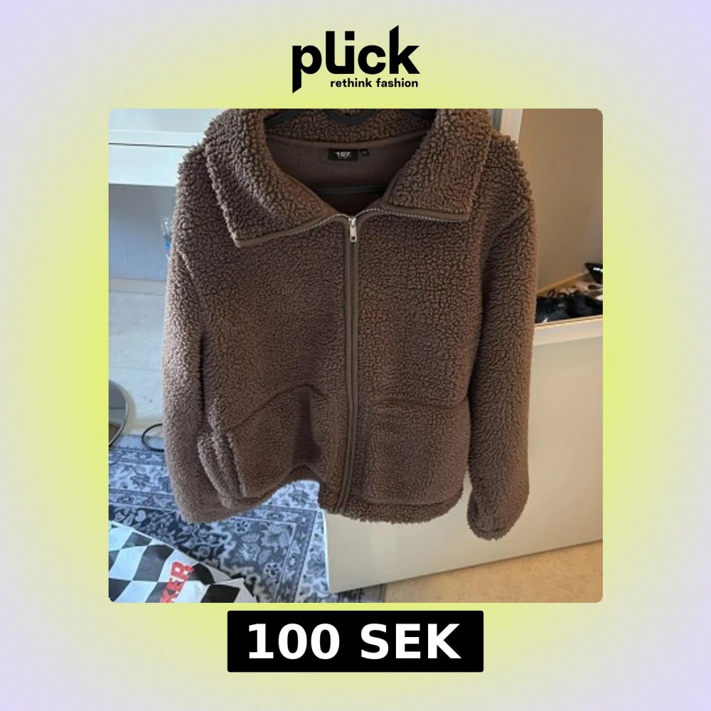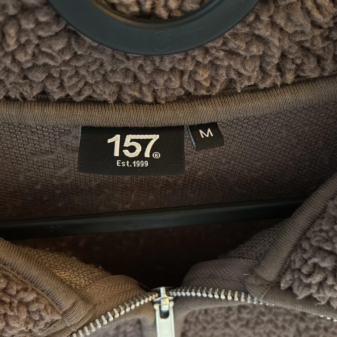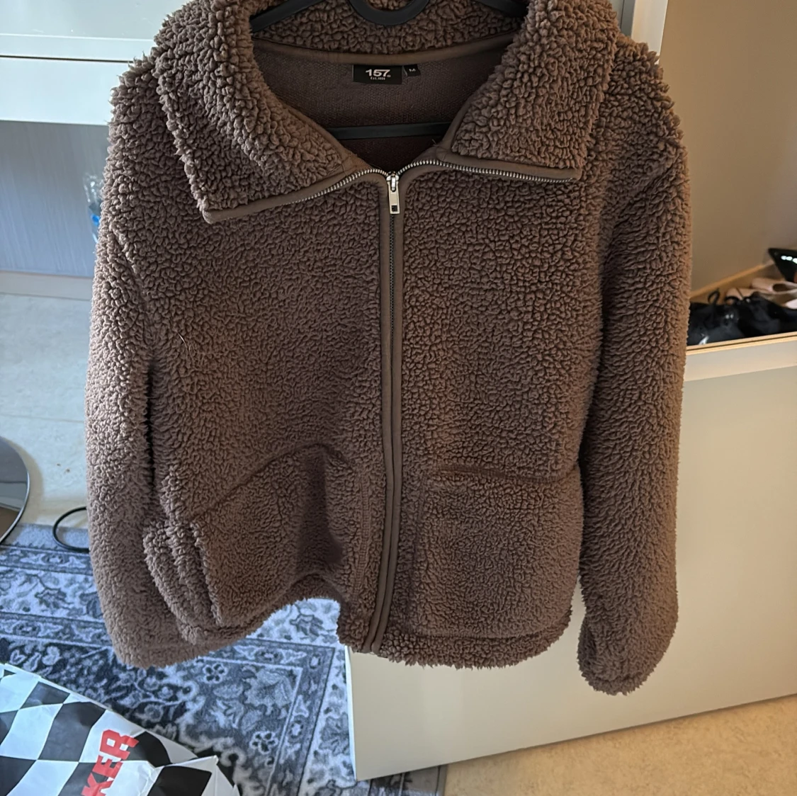 Mysig brun teddyjacka från 157 i storlek M. Jackan har dragkedja framtill, två stora fickor och en hög krage. Den är använd fåtal gånger så inga tecken på användning :)