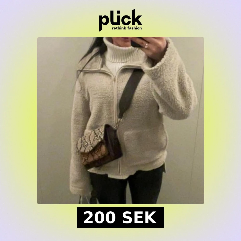 Mysig beige teddyjacka med hög krage och hel dragkedja framtill. Jackan är knappt använd och är i mycket bra skick. Super fin inför hösten och vintern❤️
