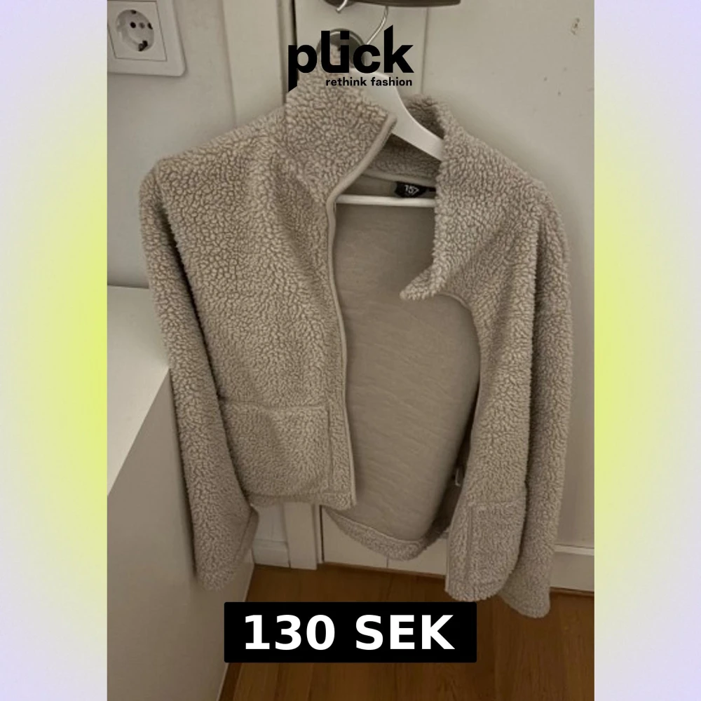 Mysig beige teddyjacka från 157 i storlek M. Jackan har hög krage, dragkedja framtill och två stora fickor. Perfekt för kyliga dagar när du vill vara både varm och stilren. Fleece-liknande material ger en skön och fluffig känsla.