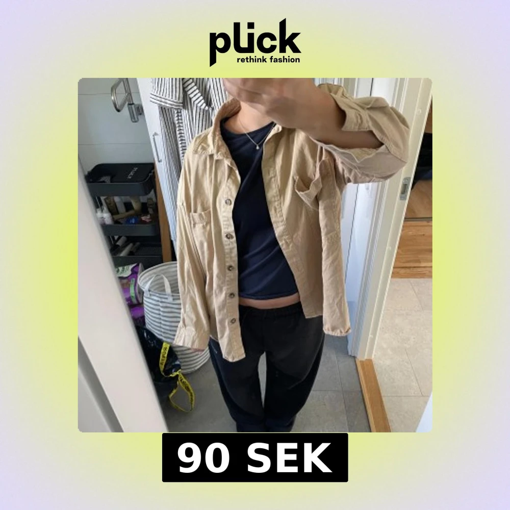Säljer en beige overshirt från 157 med klassisk krage, stora bröstfickor och knappar framtill. Skjortan är i bomull och har en loose passform med långa ärmar och manschetter. Perfekt att slänga över en t-shirt för en chill look.
