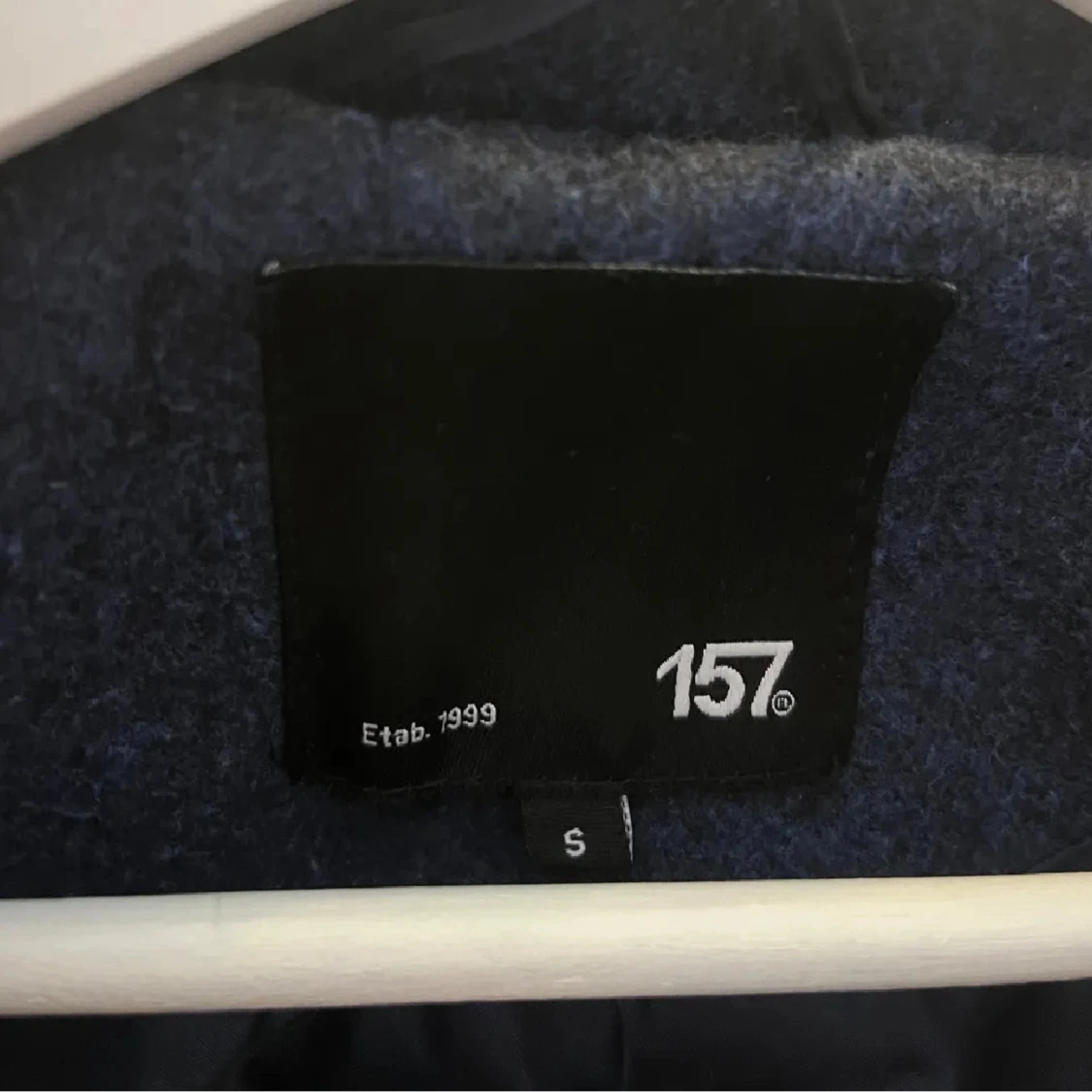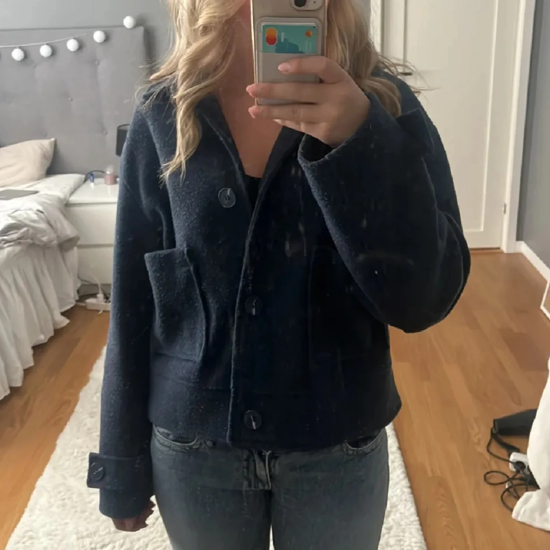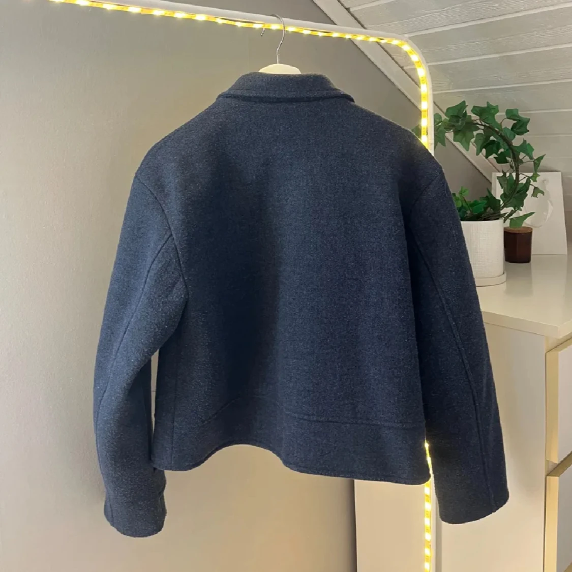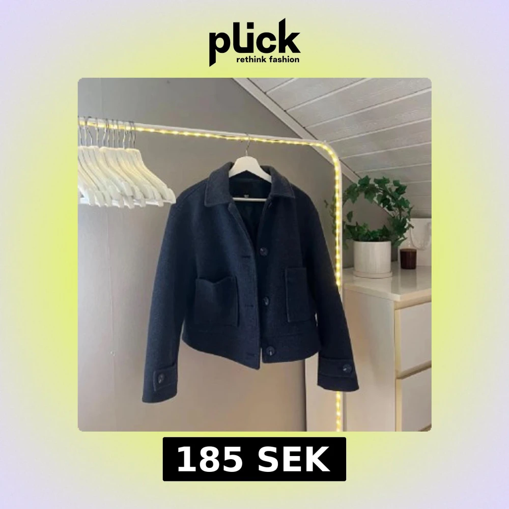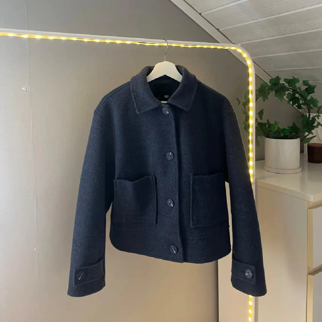 Snygg mörkblå kappa från lager 157 med krage, knappar och två fickor framtill. Jackan är croppad och har en rak passform.