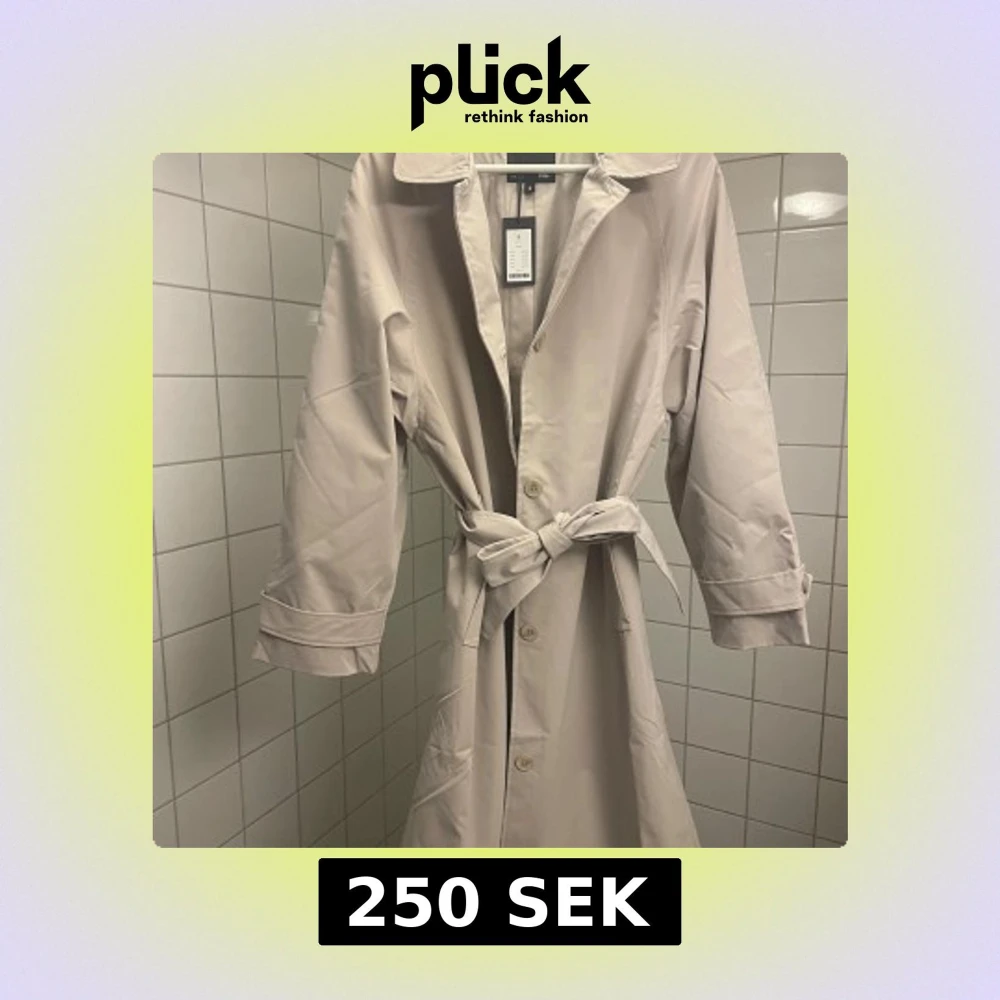Snygg beige trenchcoat med klassisk design. Jackan har ett knytbälte i midjan och knappar framtill. Perfekt för vår och höst. Nypris 400
