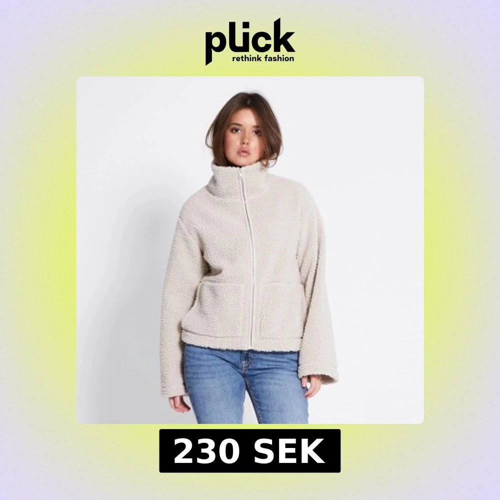 Säljer en beige teddyjacka med hög krage och hel dragkedja framtill från lager 157 i storlek S. Jackan har två stora fickor och är tillverkad i mjukt fleece-material🥰