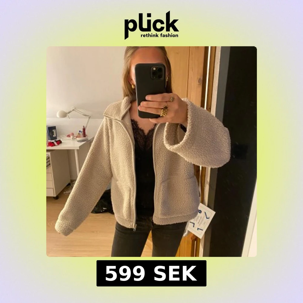 Mysig beige teddyjacka med hög varm krage som också kan vikas ner, och hel dragkedja framtill. Jackan har två stora fickor och en loose passform som ger en chill vibe. Perfekt för kalla dagar när du vill vara både varm och snygg. Materialet är fluffigt och mjukt, vilket gör den extra skön att bära. Den är slutsåld och svår att få tag på, därför jag säljer den för dyrare pris, men i min åsikt tycker jag den är värt priset!!💕💕💕