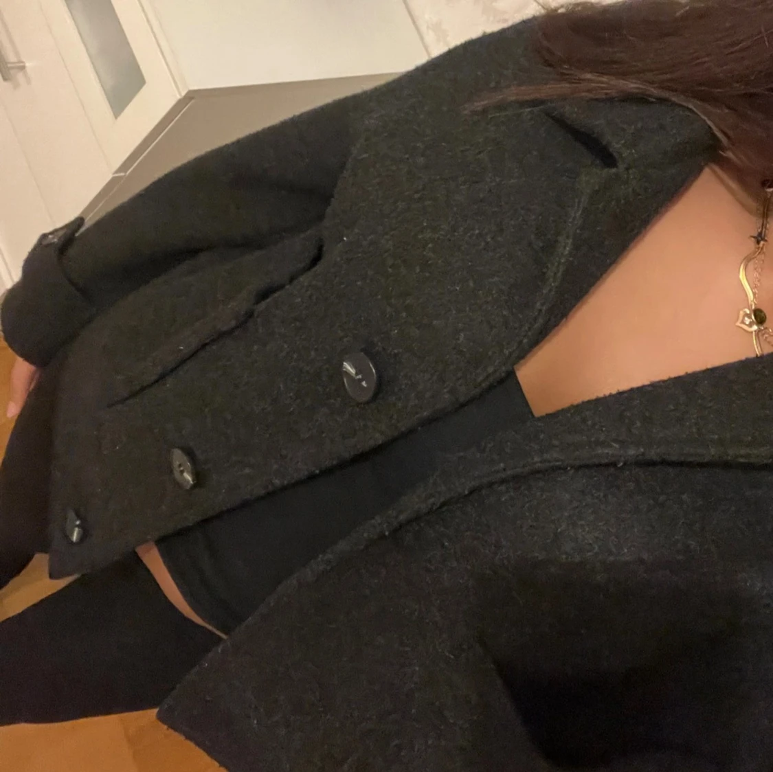 Säljer en svart kappa i ull från Lager 157. Supermysig och perfekt för en enkel look.