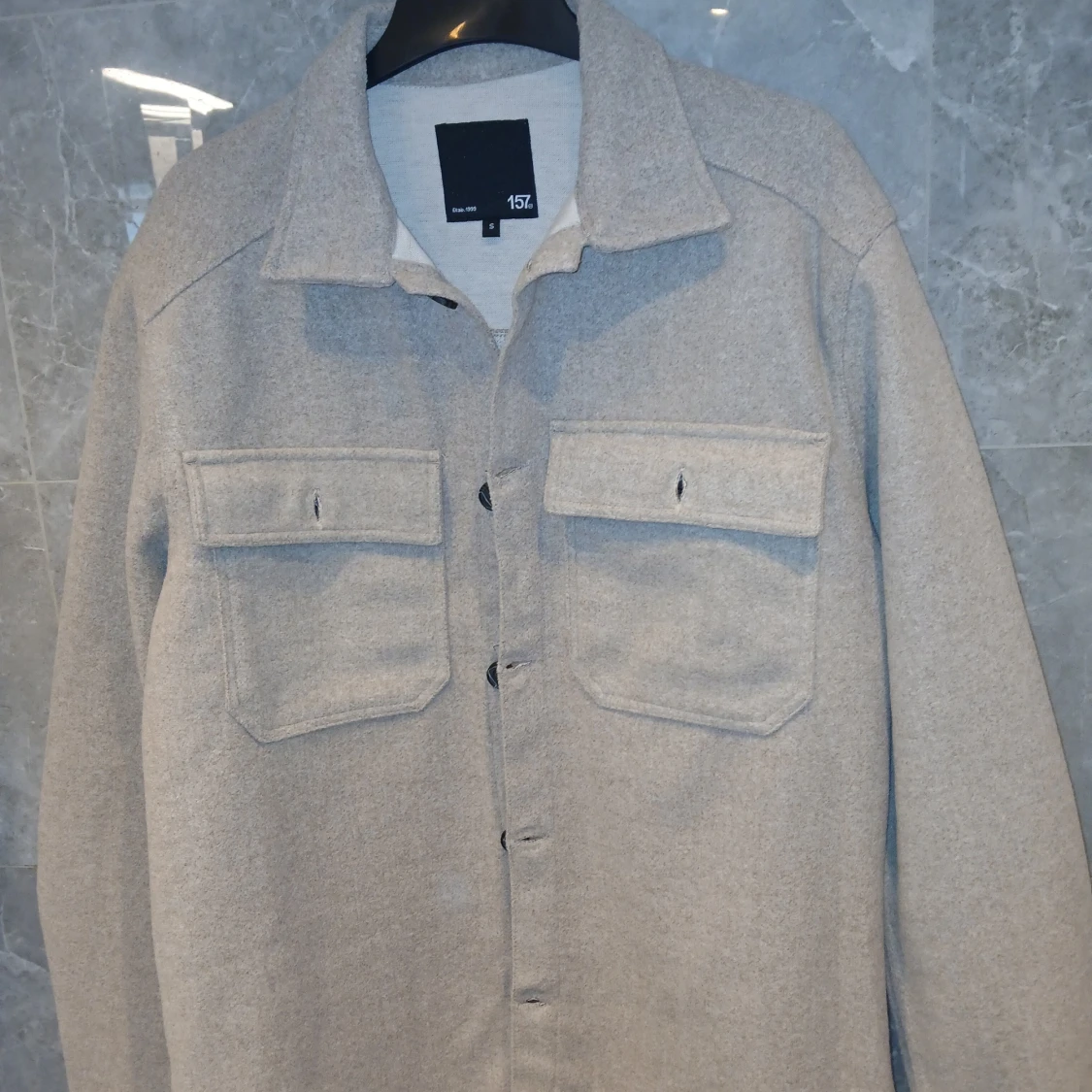 Snygg grå overshirt från 157 med klassisk krage och två stora bröstfickor med lock. Jackan är i mjukt material, har knäppning framtill och långa ärmar med knapp vid ärmslut. Perfekt för lager-på-lager och chill stil.