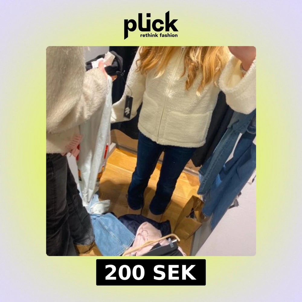 Mysig vit teddyjacka med hel dragkedja framtill och hög krage. Jackan har en fluffig och mjuk yta i fleece, perfekt för kyliga dagar. Långärmad och med en enkel, clean look som är lätt att matcha med jeans eller leggings.Jättebra skick