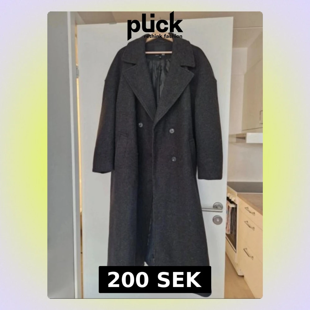 Säljer en stilren mörkgrå kappa från lager157 med dubbelknäppning och bred krage. Modellen är lång och har en loose passform, perfekt för kalla dagar. Gjord i ullblandning för extra värme och har två fickor framtill. Storlek xl. Tyvärr för stor för mig. Utan tag men jätte fint skick som ny