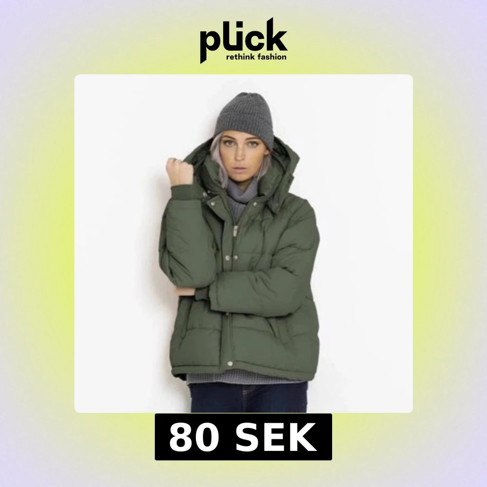 Snygg grön pufferjacka från lager så gott som ny. Jackan har tappat en knapp vid luvan som man kan se på bilden.