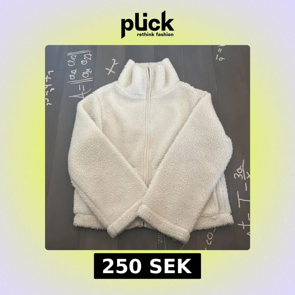 Mysig vit teddyjacka med hög krage och hel dragkedja framtill. Jackan har två stora fickor och är tillverkad i fluffigt teddy-material som ger en riktigt skön och avslappnad vibe. Perfekt för kyliga dagar när du vill vara både varm och stilren. 1 gång använd