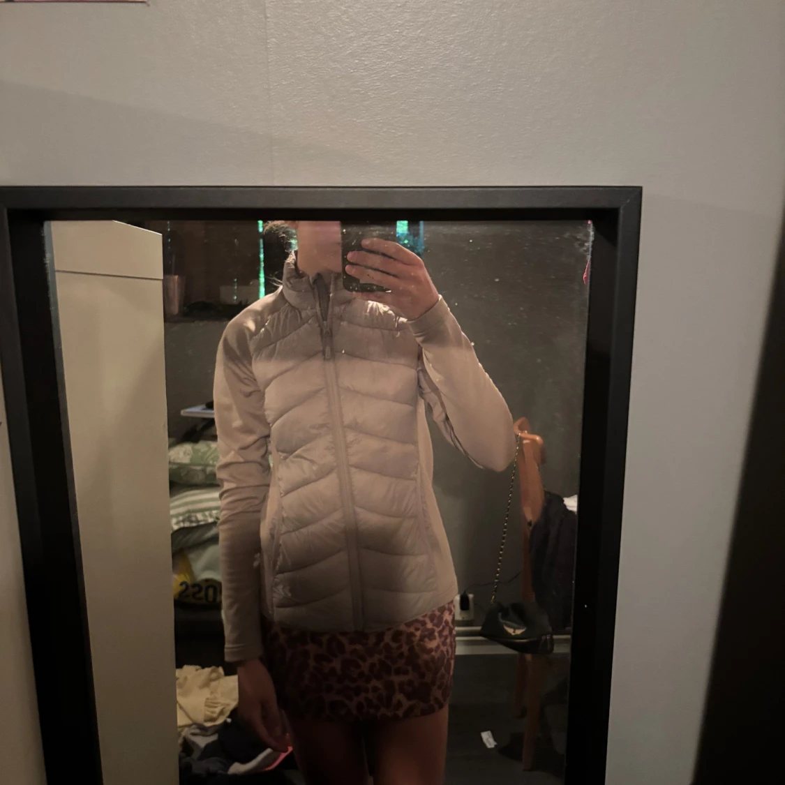 Säljer en beige lättviktsjacka i storlek XS. Jackan har en smal passform, hög krage och dragkedja framtill. jackan är lätt varderad men inte på armarna. Enkel och stilren design som funkar till det mesta.