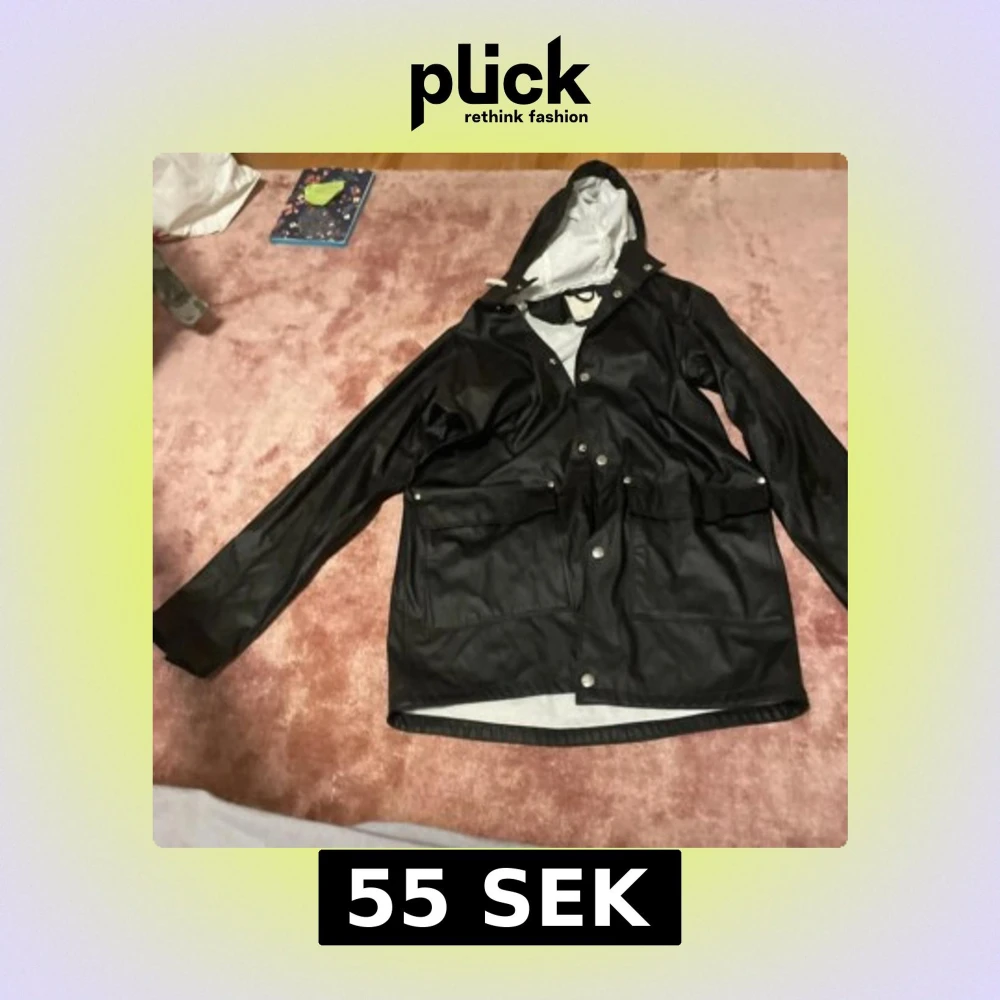 Svart regnjacka från 157 i storlek XS. Jackan har huva med dragsko, stora fickor med lock och tryckknappar framtill. Perfekt för regniga dagar med sin vattenavvisande yta och klassiska look. Enkel att matcha och riktigt praktisk.