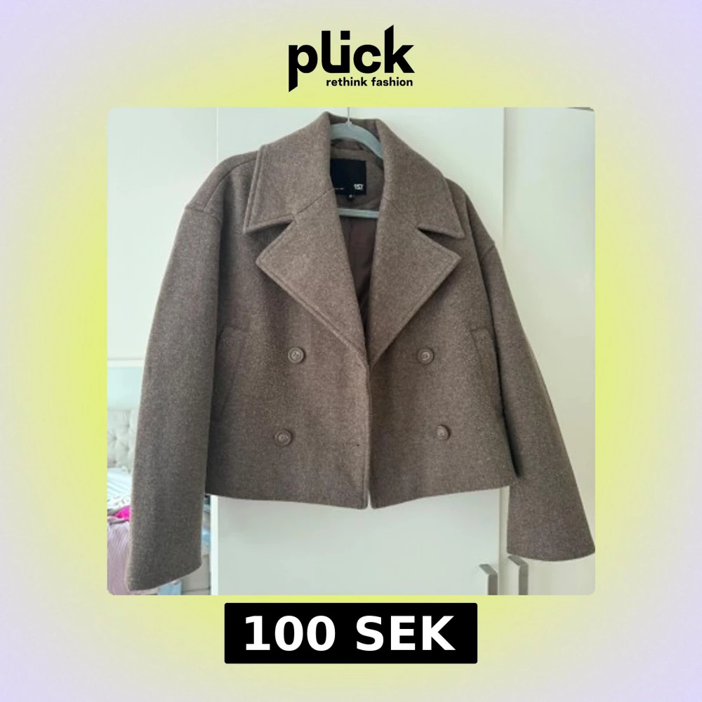 Säljer en brun skepparjacka från 157 med dubbelknäppning och bred krage. Jackan är croppad och har en loose passform med långa ärmar. Perfekt för dig som gillar klassisk stil med modern twist.