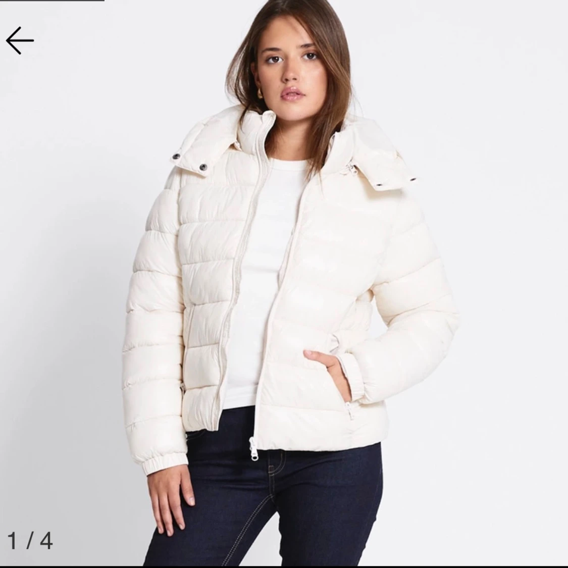 Säljer en fräsch vit pufferjacka med huva och dragkedja framtill. Jackan har quiltad design och är lite kortare i modellen, vilket ger en snygg och modern look. Perfekt för dig som vill ha en varm och stilren jacka till vintern. Helt ny med prislapp