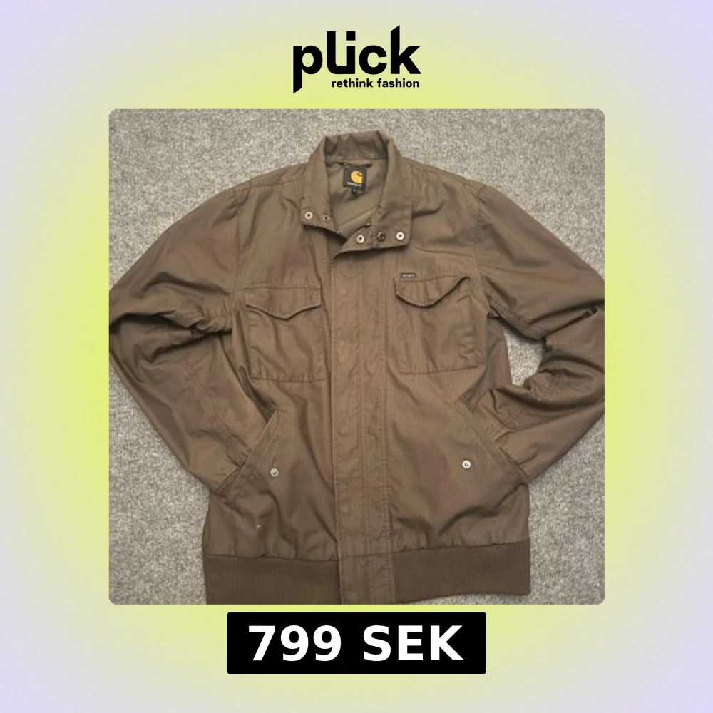 Snygg mörkgrön jacka från Carhartt med klassisk krage, två bröstfickor med lock och knappar samt ribbade muddar vid ärmslut och midja. Jackan har dragkedja framtill och är tillverkad i slitstark bomull. Perfekt för dig som gillar streetwear nu till hösten